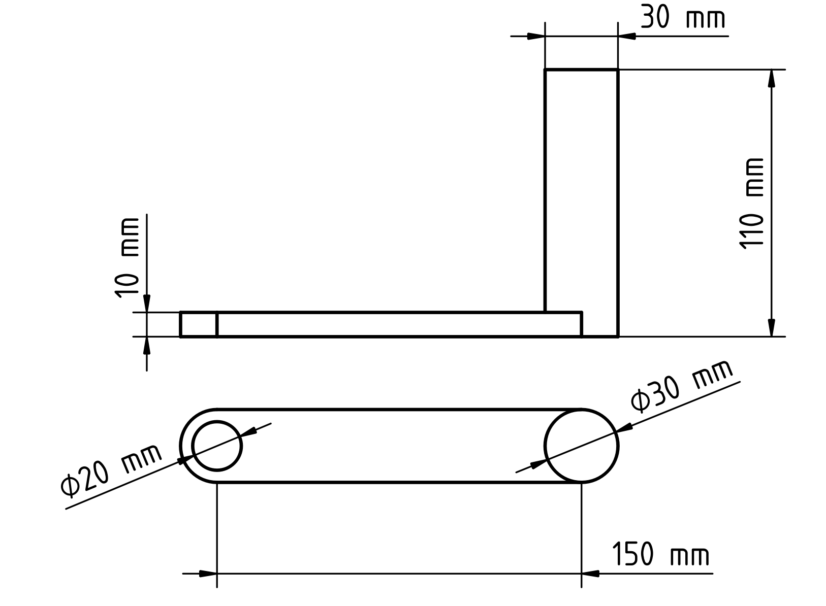 The image below-left shows the dimensions of the pendulum and its protrusion. On the right the initial assembly can be appreciated. The dimensions of the pin and the material properties remain the same as in the Compound Pendulum example.